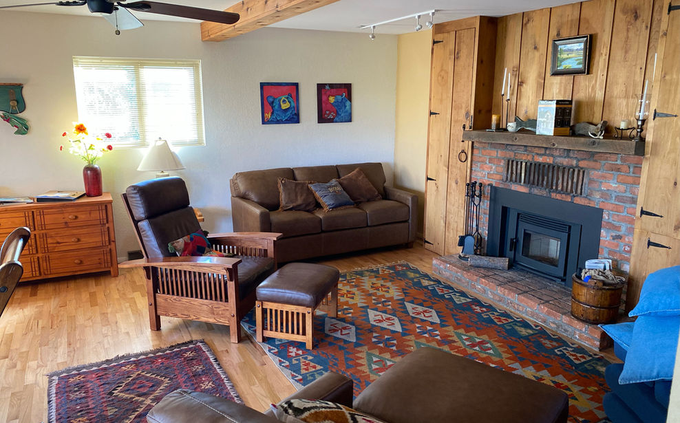 The Master bedroom has a King bed and a large bathroom with a walk-in shower. There is a sliding door that leads out to the deck which overlooks the river and the expansive Madison Mountain Range. Bedroom 2 holds a Queen bed, and Bedroom 3 has two Twin beds. All three bedrooms in the main house have views of the river and mountains. There is a bathroom in the hallway with a tub/shower combination. Riverbend House is centrally heated and equipped with ceiling fans. It is only a five-minute drive to the charming town of Ennis where you can find shops, groceries, and numerous restaurants.